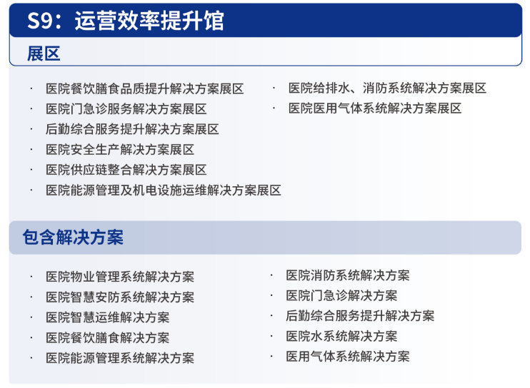 CHCC2026 紧跟新时代发展趋势,把握现代医院发展新需求,前瞻性规划S9运营效率提升馆,精准回应新时代医院对于精益化、韧性化、智慧化发展的核心诉求,旨在为医院破解运营管理难题、构筑面向未来的核心竞争力,提供一个系统性的解决方案平台。
