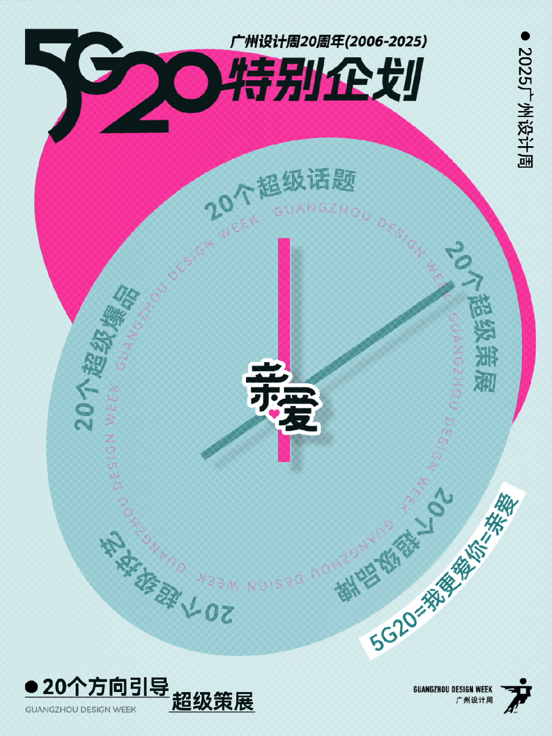 一共5个20,凑起来刚好就是“5G20”,如此特别企划,既是对2025广州设计周“亲爱”主题的呼应,也强化了20周年的20印象,更是广州设计周致力于成为“当代人居生活美学策源地”愿景使命的一次厚积薄发。