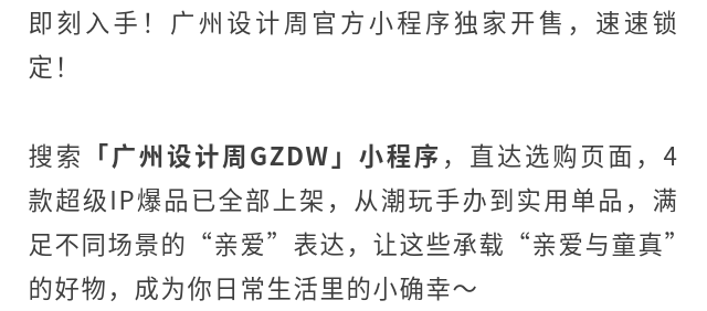 今年我们想打造一个「广设好物」IP爆品礼物商店,将筛选出20个“奇思妙想”型的IP美学好物礼品集中在广设商店中展售,全面覆盖电商平台+线下销售资源平台+广州设计周渠道资源平台,争取打造新的IP爆品。
