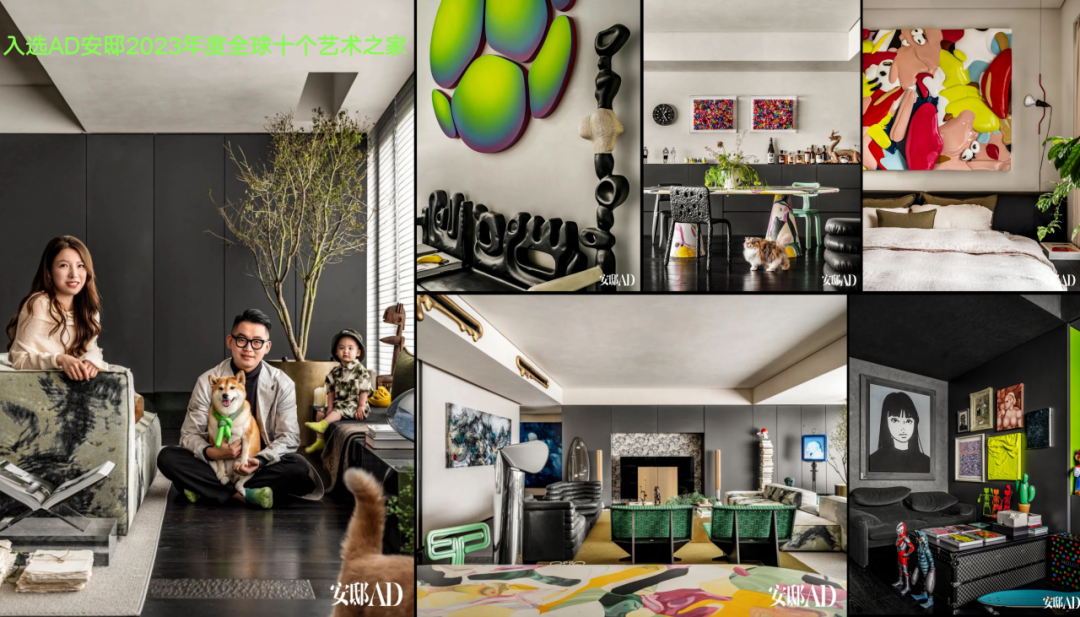 其设计实践体现了这一理念:在个人平层住宅中,先梳理十年收藏的艺术品与家具,再以 “策展思维” 规划空间,将绿色系艺术品与室内植物呼应,甚至为解决冷凝水问题,设计了造型独特的空调出风口,让功能细节也成为设计语言。