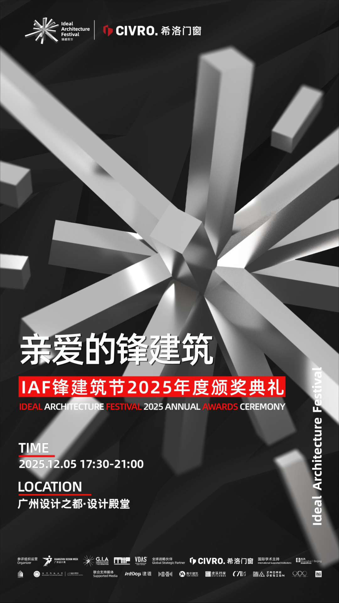 亲爱的锋建筑——IAF锋建筑节2025年度颁奖典礼由广州设计周与IAF锋建筑节全球战略伙伴-希洛门窗联合举办,作为IAF锋建筑节2025年度收官盛典,将在12月5日广州设计周展会首日于广州设计之都·设计殿堂盛大启幕。