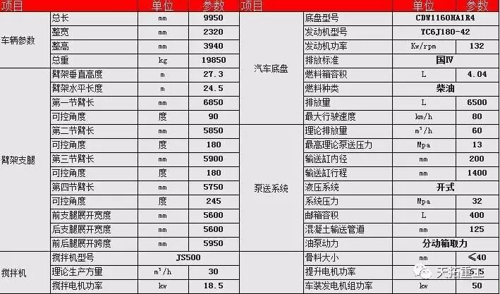 天拓重工搅拌泵车带天泵一体机产品价格表