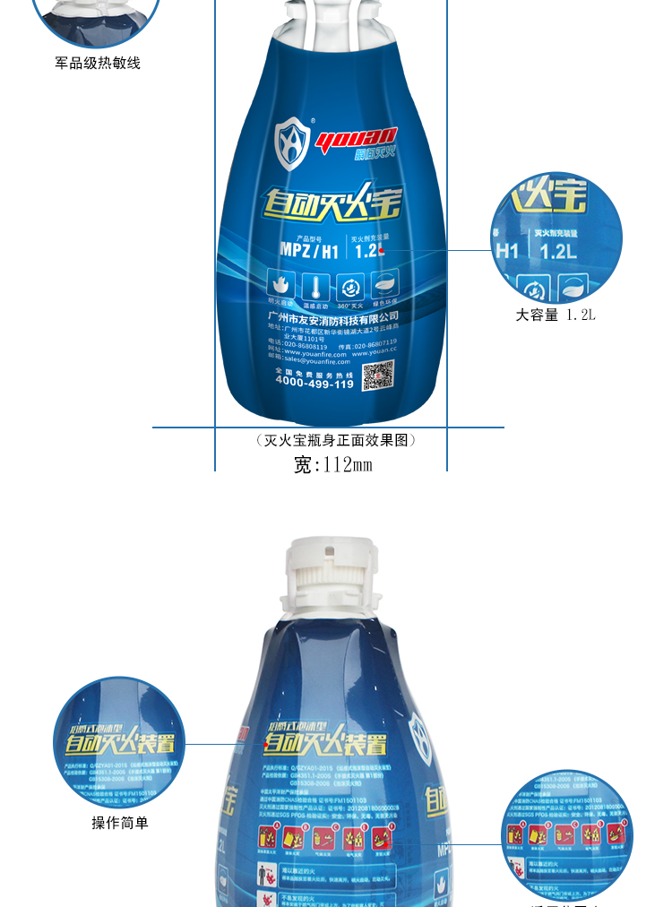 友安灭火手雷投掷型车载家用水基瞬间灭火器