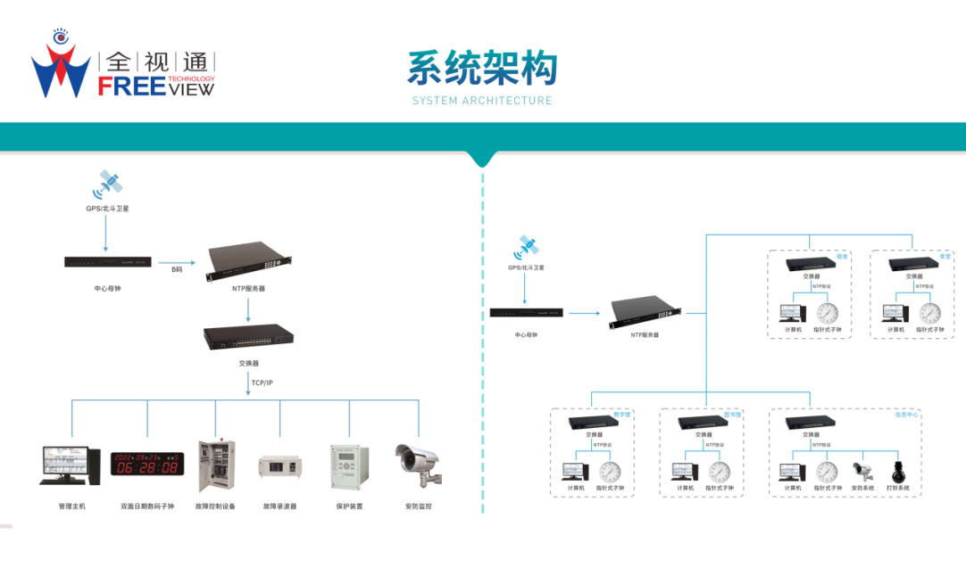 为了适配不同信息化要求,全视通时间同步系统可采用不同的组网方式。