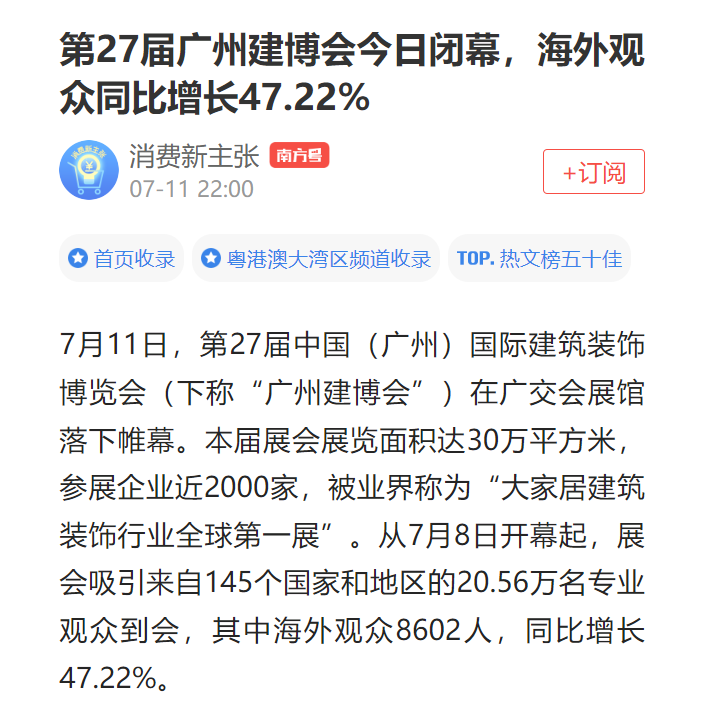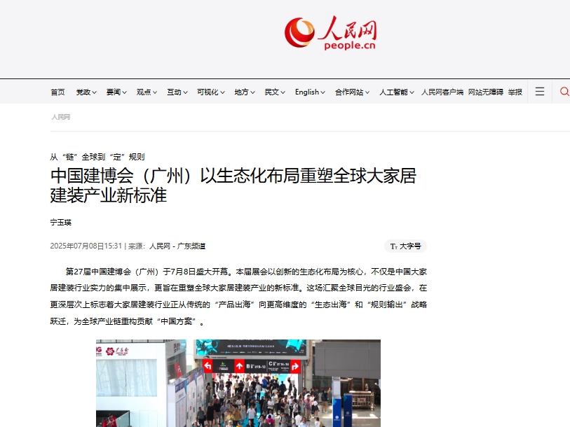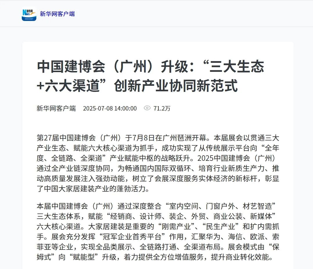 本届展会创新构建“室内空间、门窗户外、材艺智造”三大生态体系,并围绕“经销商、设计师、装企、外贸、商业公装、新媒体”六大核心渠道打造“三链三联”赋能IP。在规模稳居全球第一展的实现了从传统展示平台向“生态协同+渠道破局”产业中枢的战略跃升,引发了海内外媒体的高度关注,众多quanwei媒体纷纷从不同视角对展会的突出亮点和深远意义进行深度解读,以下是部分媒体代表的精彩解读: