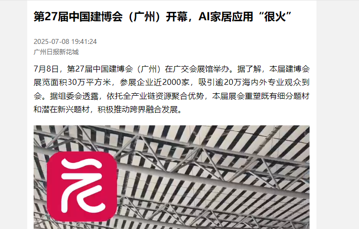 第27届中国建博会(广州)在展馆举行,展览面积30万平方米,参展企业近2000家。多款智能家电、家居等在展会首发亮相。