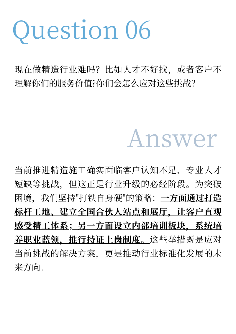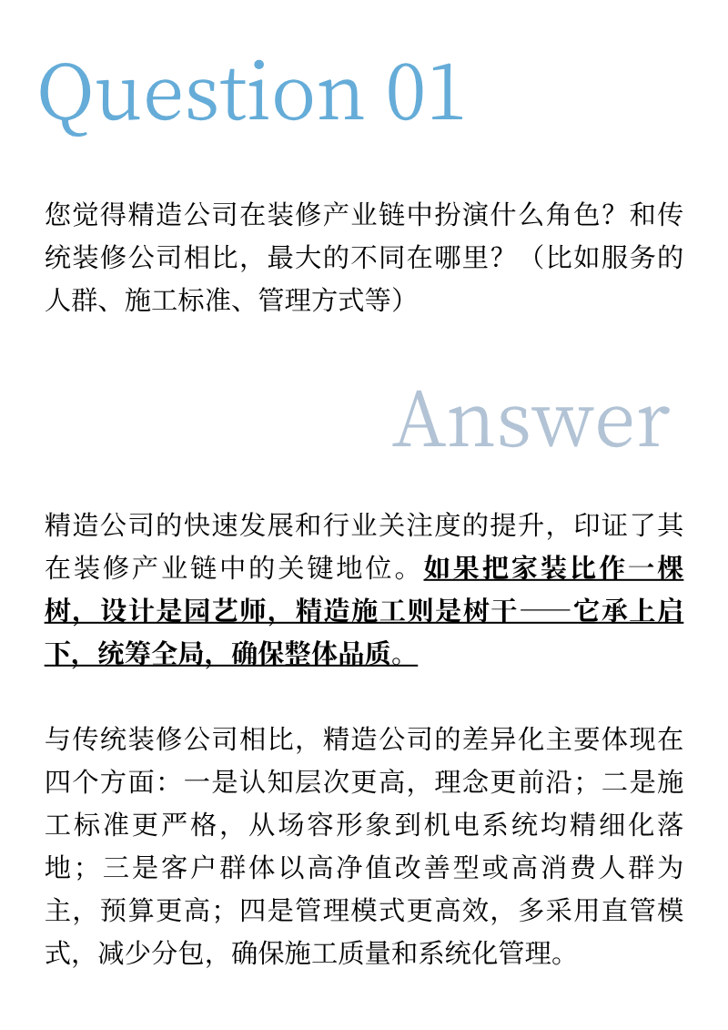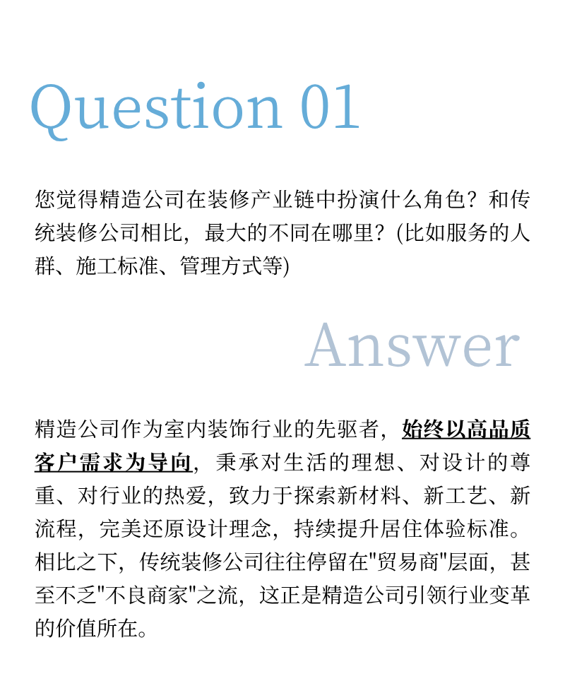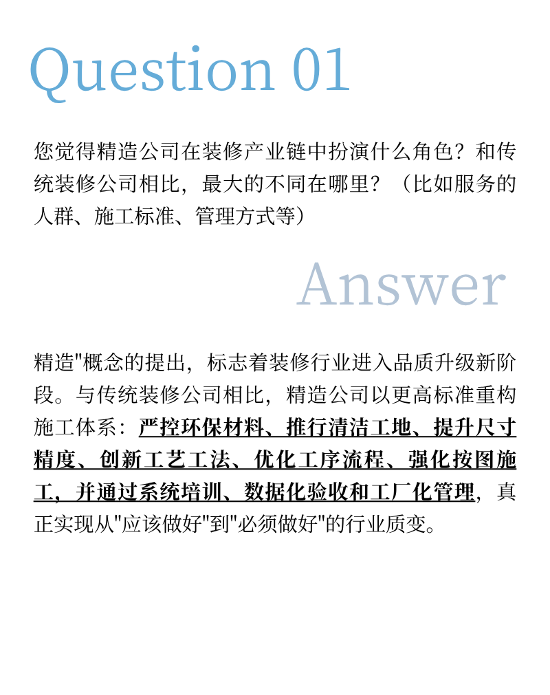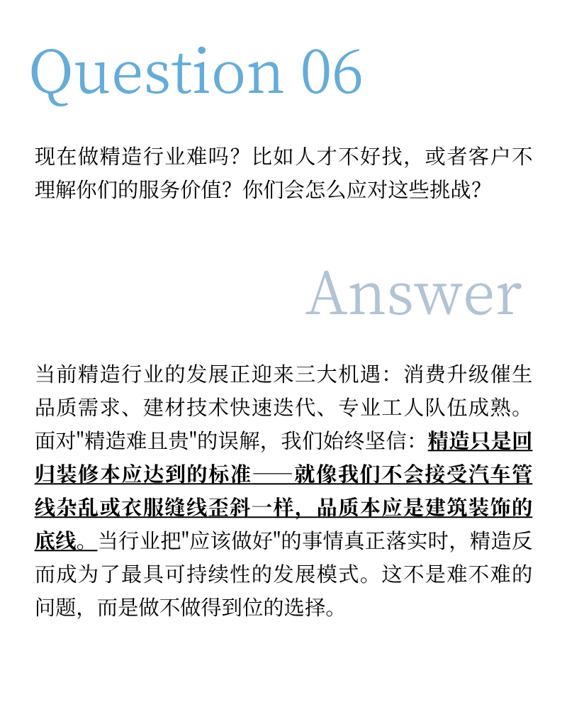 精造,早已超越难易的考量,它是装修行业找回尊严、回归本质的必然选择。 它要求深度的专业协作、严苛的工艺标准、颠覆的创新思维,以及贯穿始终的诚信闭环。