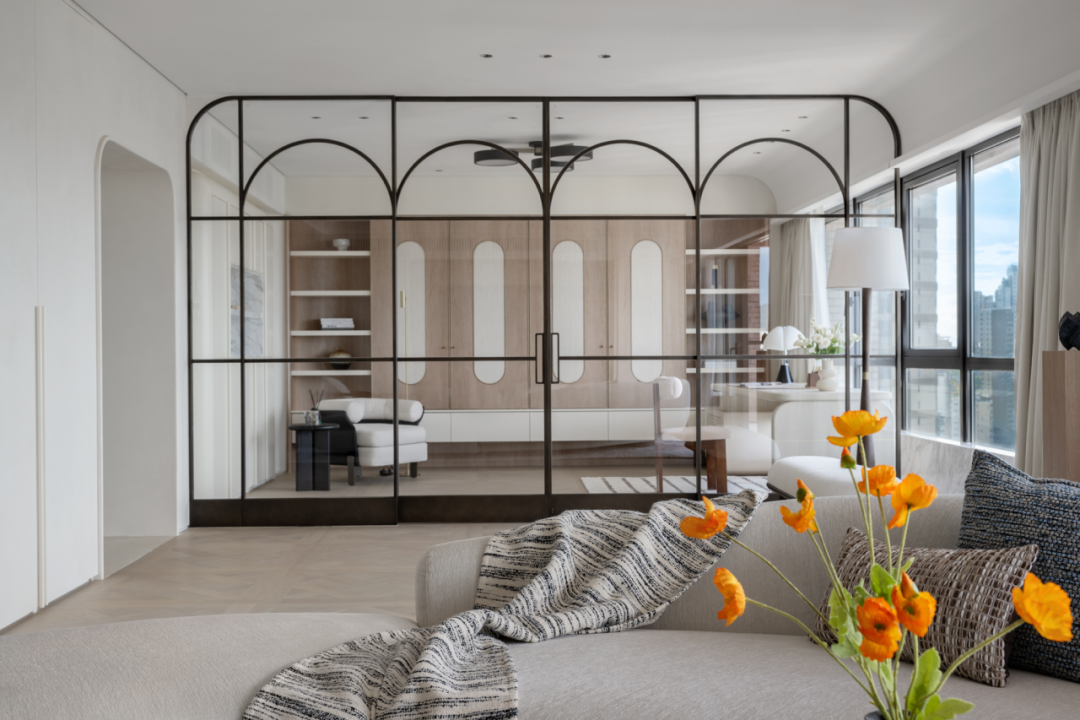 在设计过程中,团队以生活方式为核心,量身定制每一寸空间。例如,客厅原本可扩展成更大起居区,但男主人希望为孩子保留玩耍空间,能在家办公时关注孩子活动,设计了半通透的屏风隔断,既保留视线通透,又提供适度私密,体现了“人本优先”的空间策划理念。