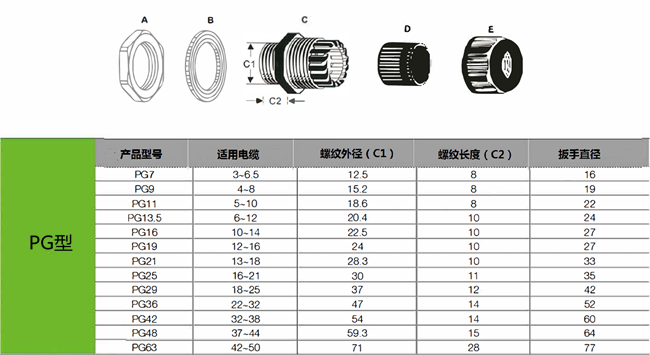 - 螺纹规格:德制PG螺纹,适配M20*1.5内螺纹(部分型号兼容)