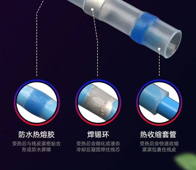2. 双重保护:热缩管绝缘耐磨,热熔胶防水抗腐蚀,延长接点使用寿命。
