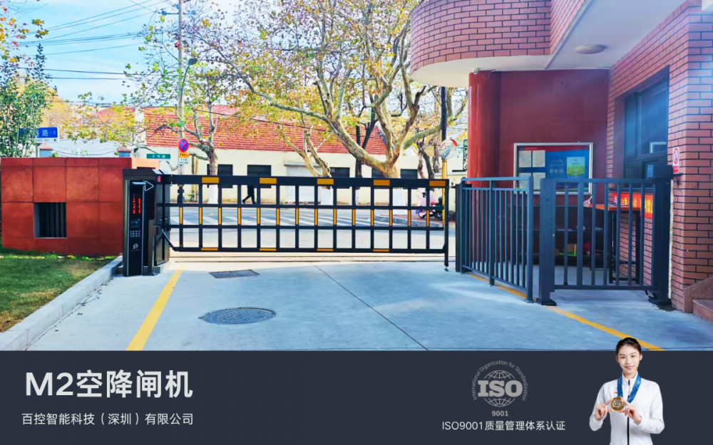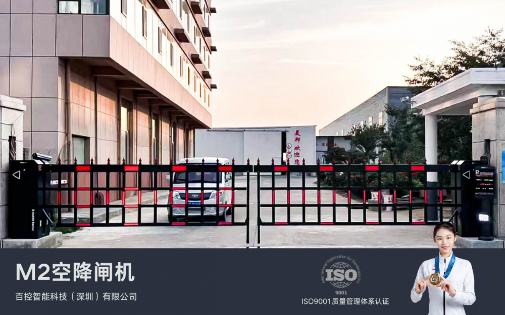 1.百控 M2 重型空降闸机专为解决普通栅栏道闸防翻越高度不足问题,采用中置安装,146×50MM 加大横梁设计,增强抗风及拉伸强度。