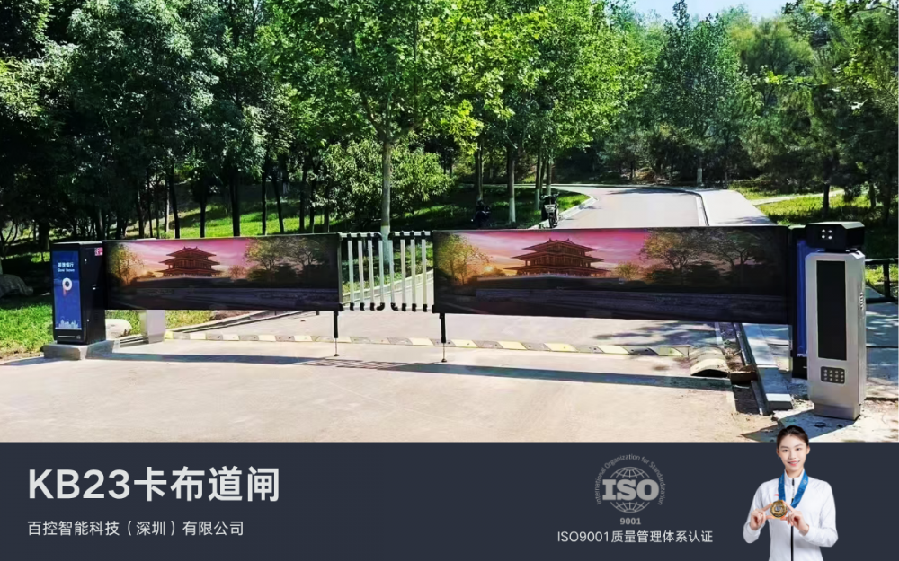 1:超强抗风,100mm 杆夹、90mm 型材配内置 L 角设计;3000×800mm 卡布画面展示佳,内置 24V 防水灯条,极端天气可拆广告,闸杆正常运行。