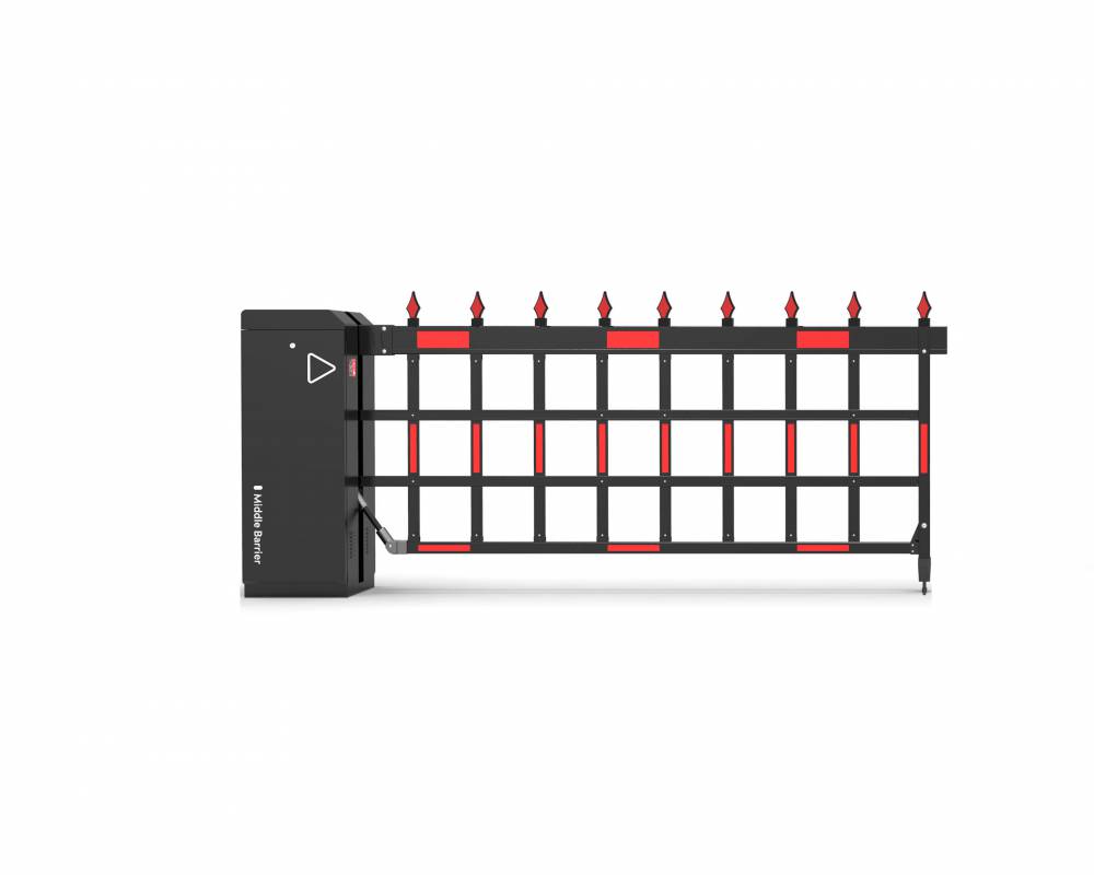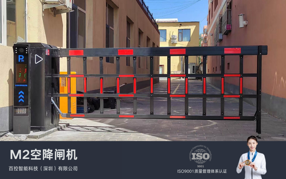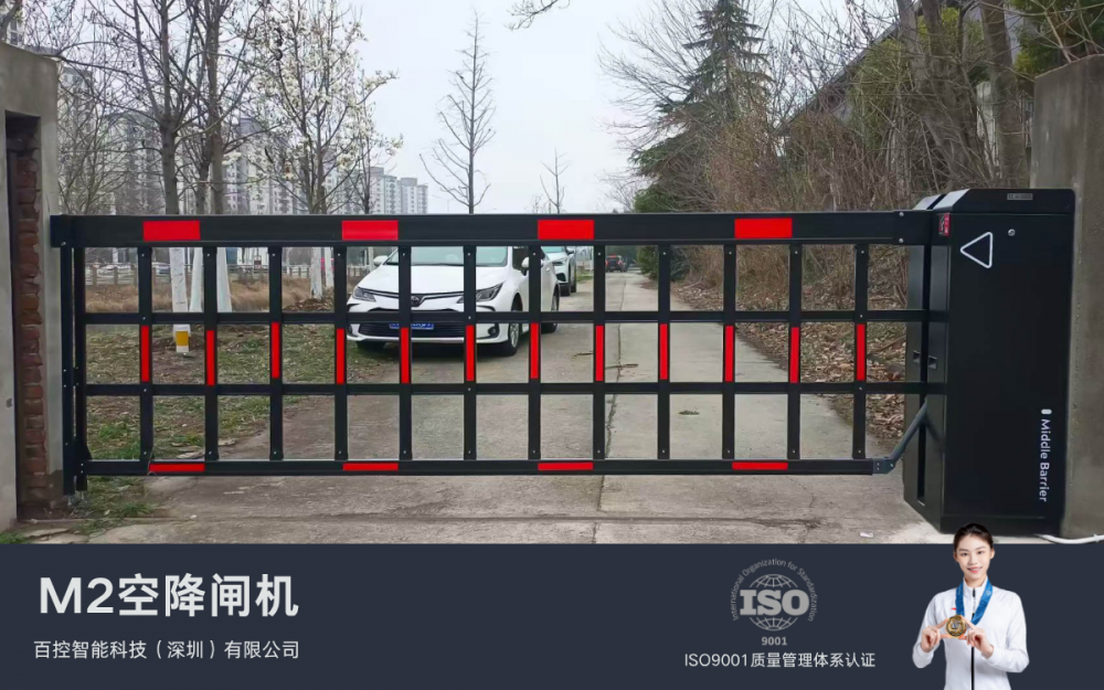 1.百控 M2 重型空降闸机专为解决普通栅栏道闸防翻越高度不足问题,采用中置安装,146×50MM 加大横梁设计,增强抗风及拉伸强度。