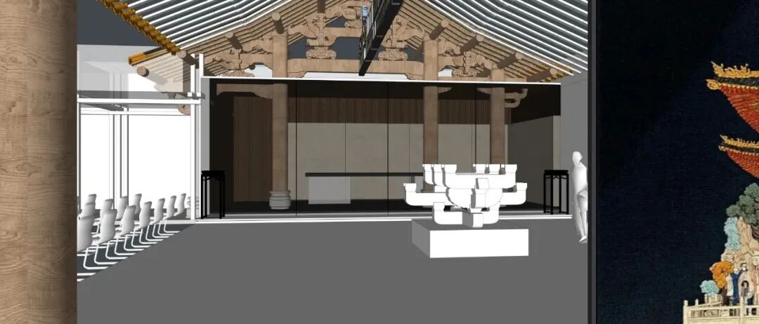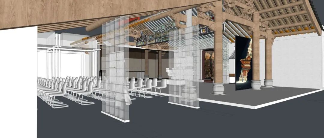 本策展以“盛世府邸 南嶺祖庭”为主题,从佛山祖庙的修缮研究出发,来探索东方大宅的居住哲学。通过神人共居的明堂、祖庭的等场景,呈现东方大宅从整体格局、空间韵律到细部匠艺的营造体系。