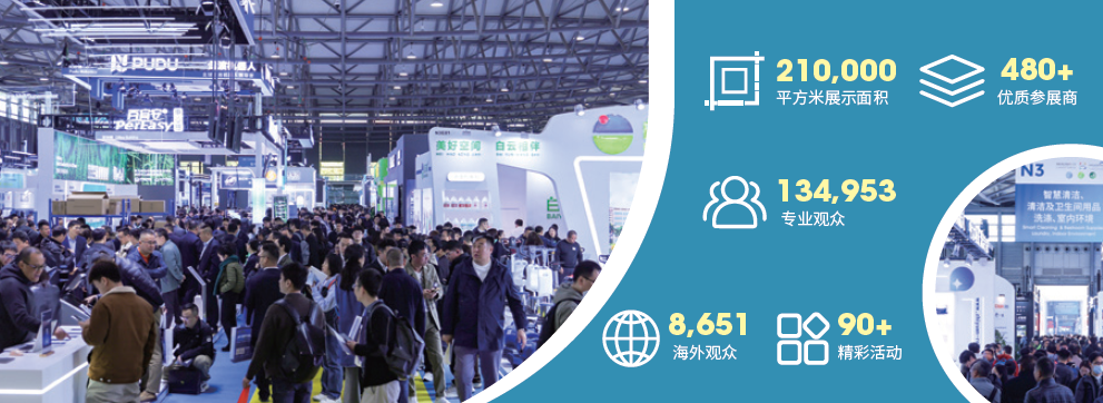 展会总展示面积达210,000平方米,汇聚480余家国内外清洁行业展商,预计吸引130,000+观众到场参观,其中海外观众8,651人。展会依托HOTEL&SHOP PLUS上海国际酒店及商业空间博览会广阔平台,与智慧酒店、建筑装饰、酒店运营等行业的2000+展商联袂呈现,形成产业链协同展示平台。