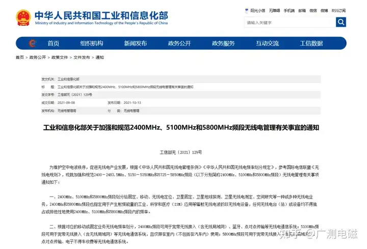根据工信部《关于加强和规范2400MHz、5100MHz和5800MHz频段无线电管理有关事宜的通知》(工信部无〔2021〕129号)要求: