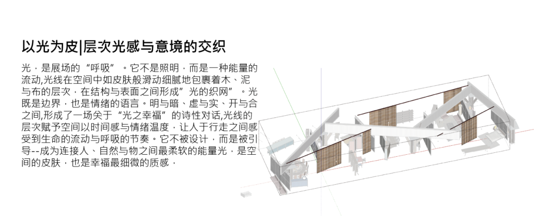 细细设计以遵循造物法则,结合个性化定制、自然与科技的融合、以及可持续设计理念,构建一个充满能量、宁静与舒适的“幸福人居样本”。在这里,空间不再只是物理的容器,而是一种与人、与自然、与文化之间的深度共振系统。每个细节与物件都承载着温度与心意,旨在提升居住者的幸福感与生活质量。“细细幸福人居展”不仅是一个居住场景的呈现,更是一种人与自然和谐共生的精神实践——一个充满生命力与心灵维度的生活场所,让幸福成为可以被感知、被体验、被细细品味的能量。