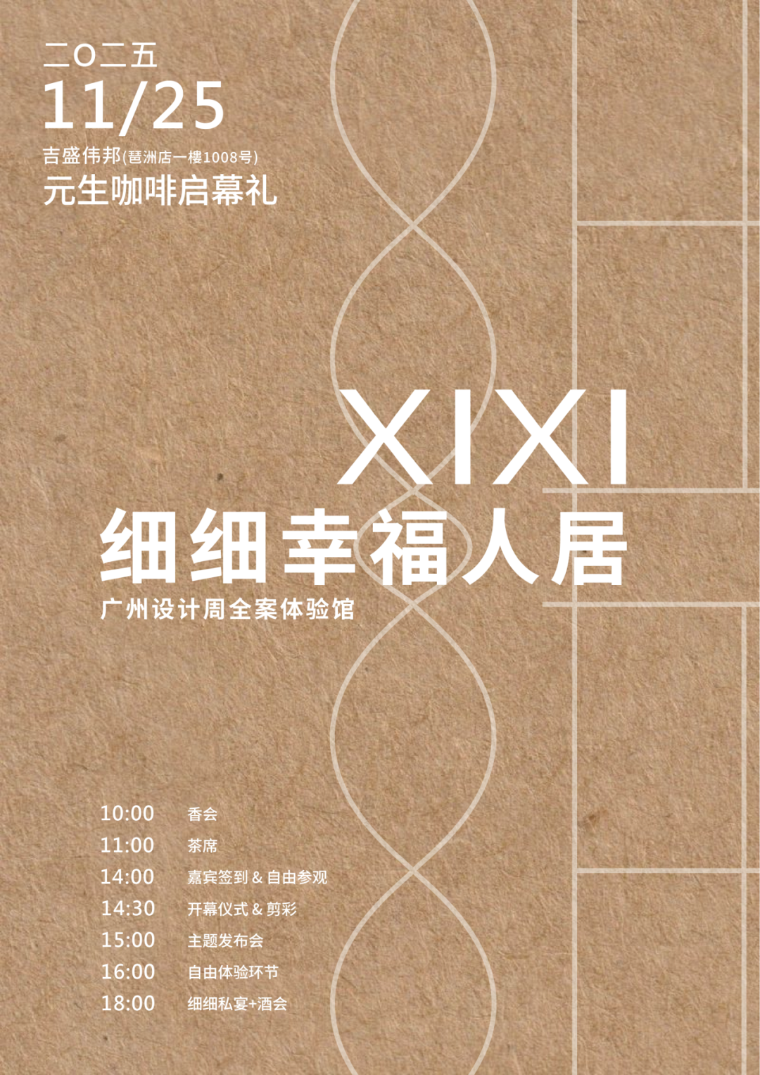 2025年11月25日,“细细幸福人居”元生咖啡暨广州设计周全案体验馆,将于广州吉盛伟邦(琶洲店)正式启幕!