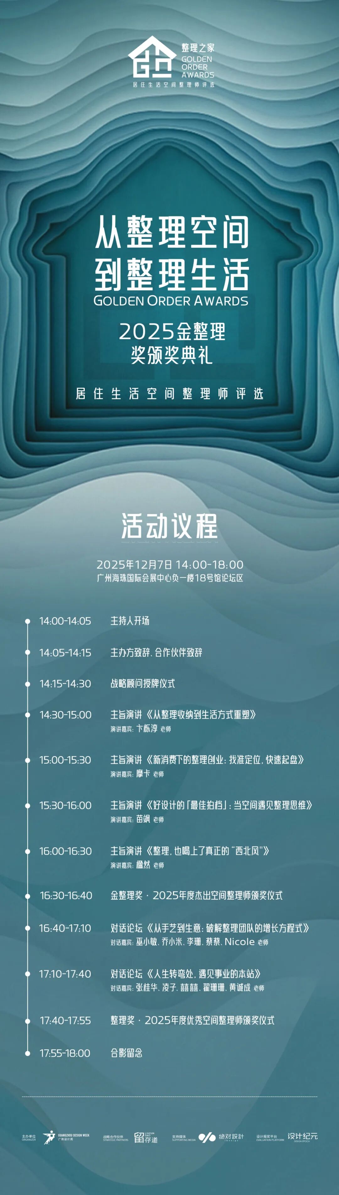 这不仅仅是一场关于“收纳技巧”的颁奖,更是一次关于“生活方式重塑”的思潮碰撞。而我们正在见证一个蜕变:整理师,不再只是帮你“收东西”的人,而是空间的算法师、美学的秩序家、生活的规划者。他们用“收纳思维”重构动线,用“行为引导”改变习惯,甚至通过整理,让房子增值,使得生活焕然一新。通过1场颁奖盛典,2场深度对话论坛、4场主旨演讲等环节,我们邀请你,一起走进「居住生活空间整理师」的世界。