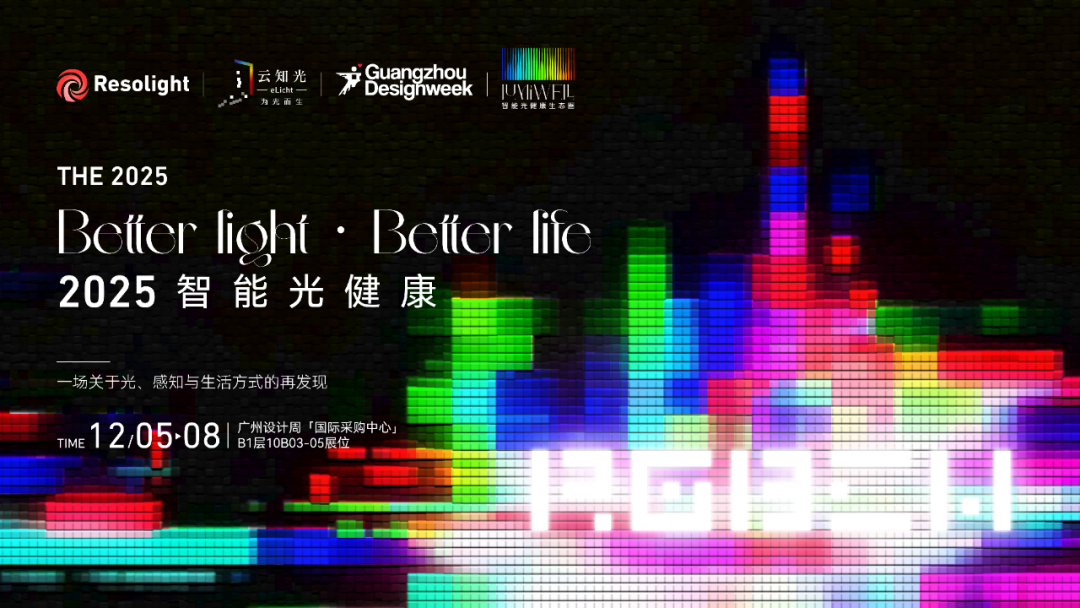 12月5日- 8日,广州设计周 · 国际采购中心B1层 10B03(01-12),Resolight芯光传媒 × 云知光 × 广州设计周邀你走进「智能光健康」主题展区Re-sense of Light不止于光,探触无限。
